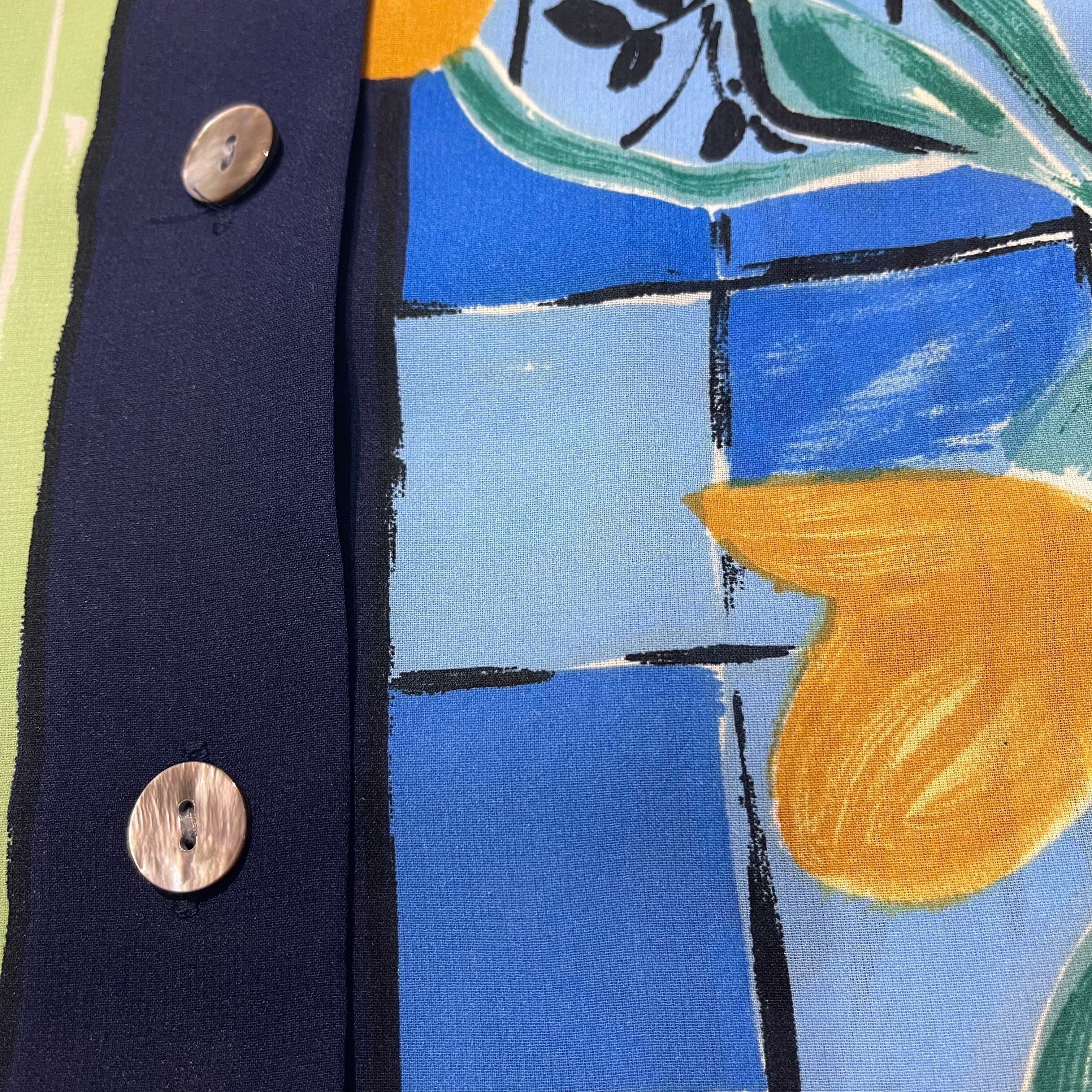 ・窓際を絵画で書いたような柄シャツになります!明るい色味なので気分が上がる一枚です!大きめサイズで着やすさも抜群!