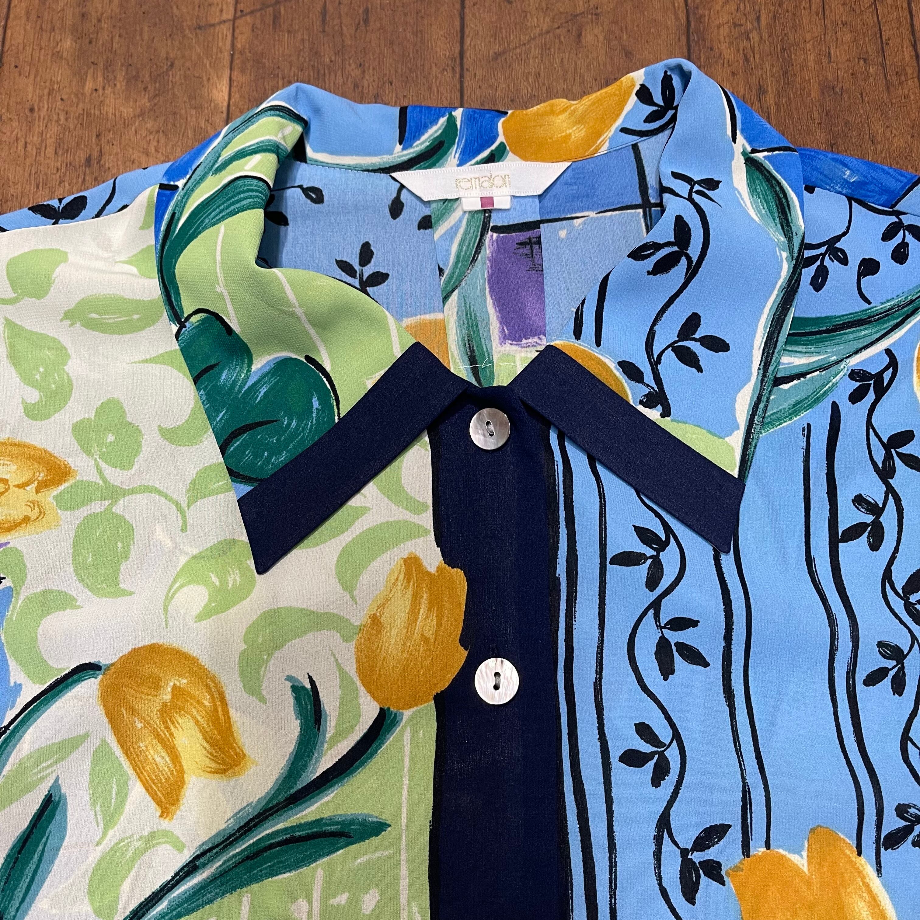 ・窓際 絵画 風 シャツ レトロブラウス ビックサイズ 貝ボタン