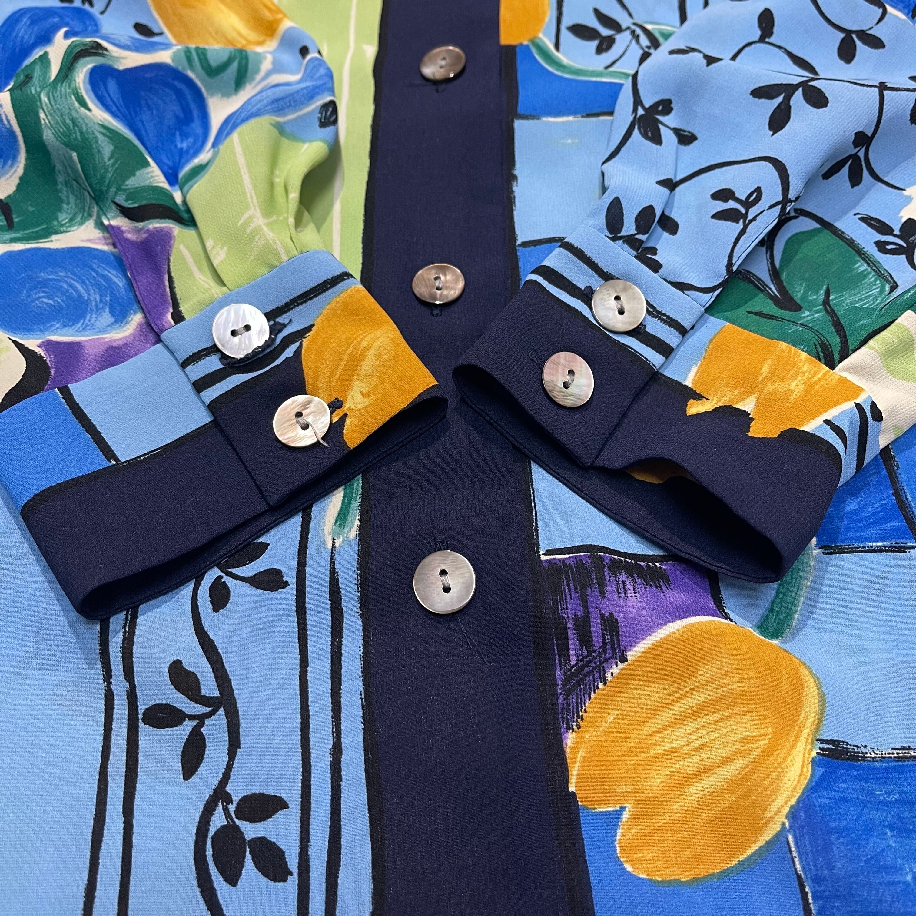 窓際 絵画 風 シャツ レトロブラウス ビックサイズ 貝ボタン 10