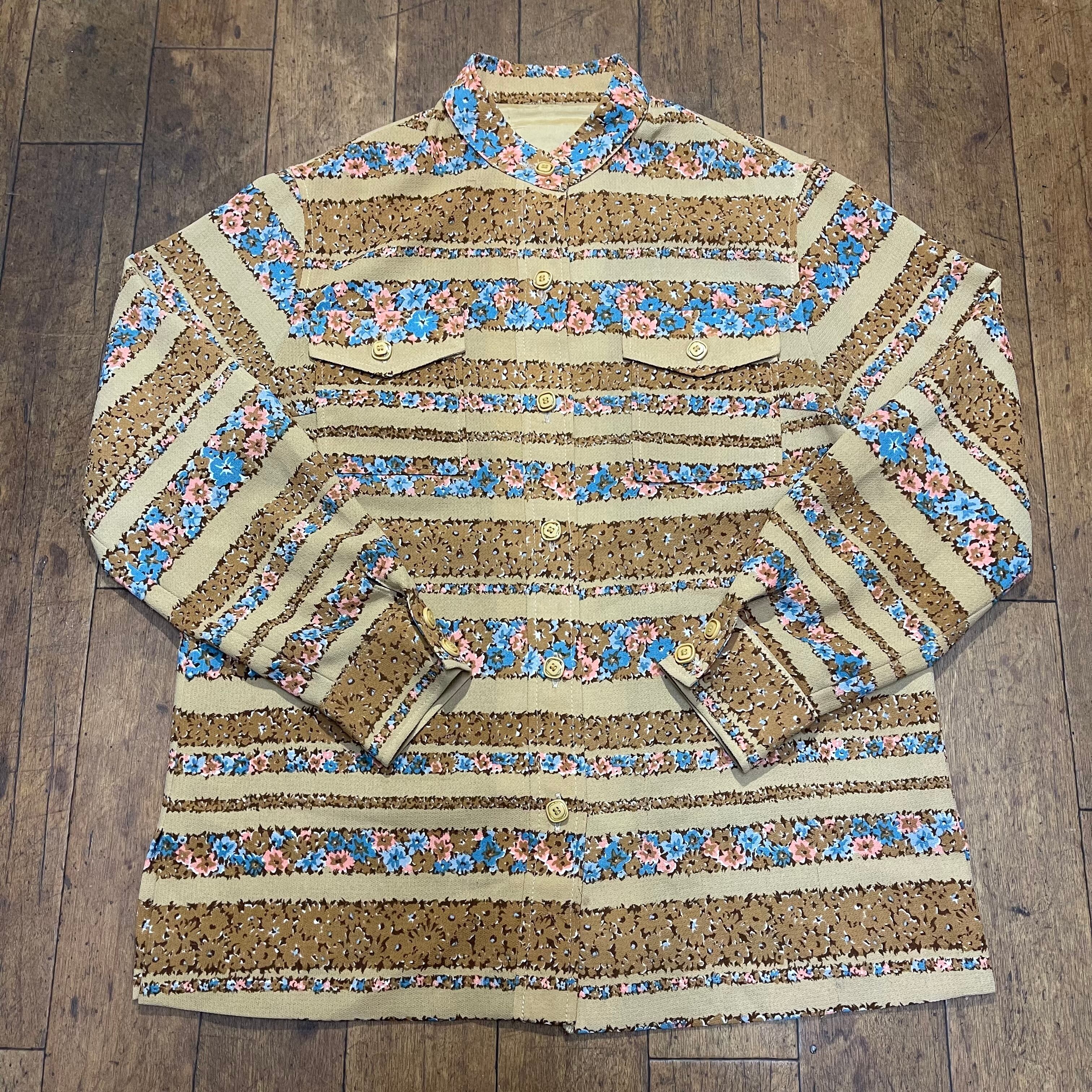 ・スタンドカラーが特徴の花柄シャツになります!秋冬感が感じる色味でとても可愛いです!