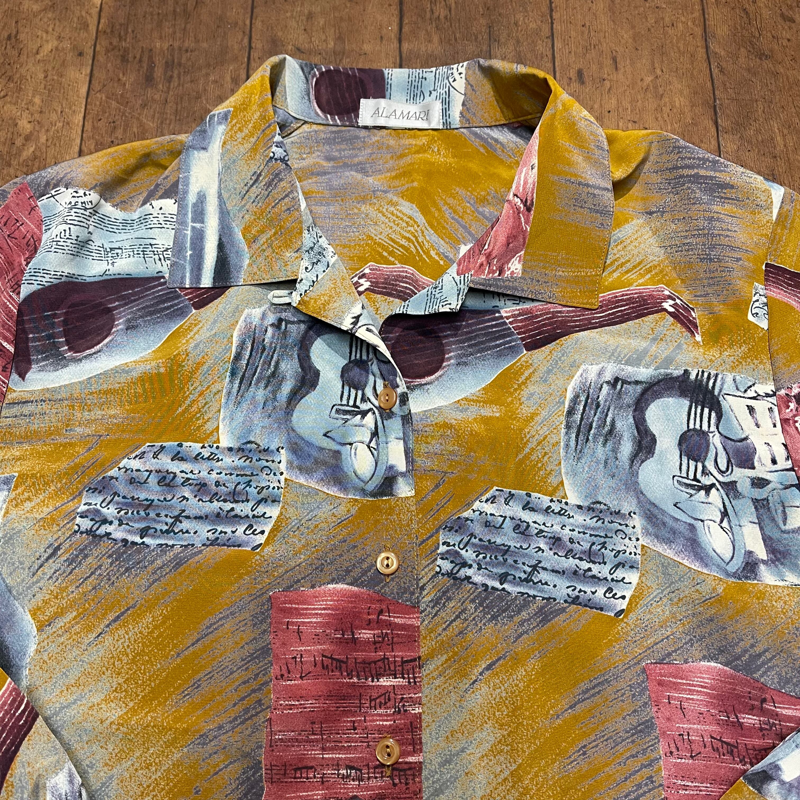 ・マンドリン柄 オープンカラー 開襟 シャツ レトロ ブラウス