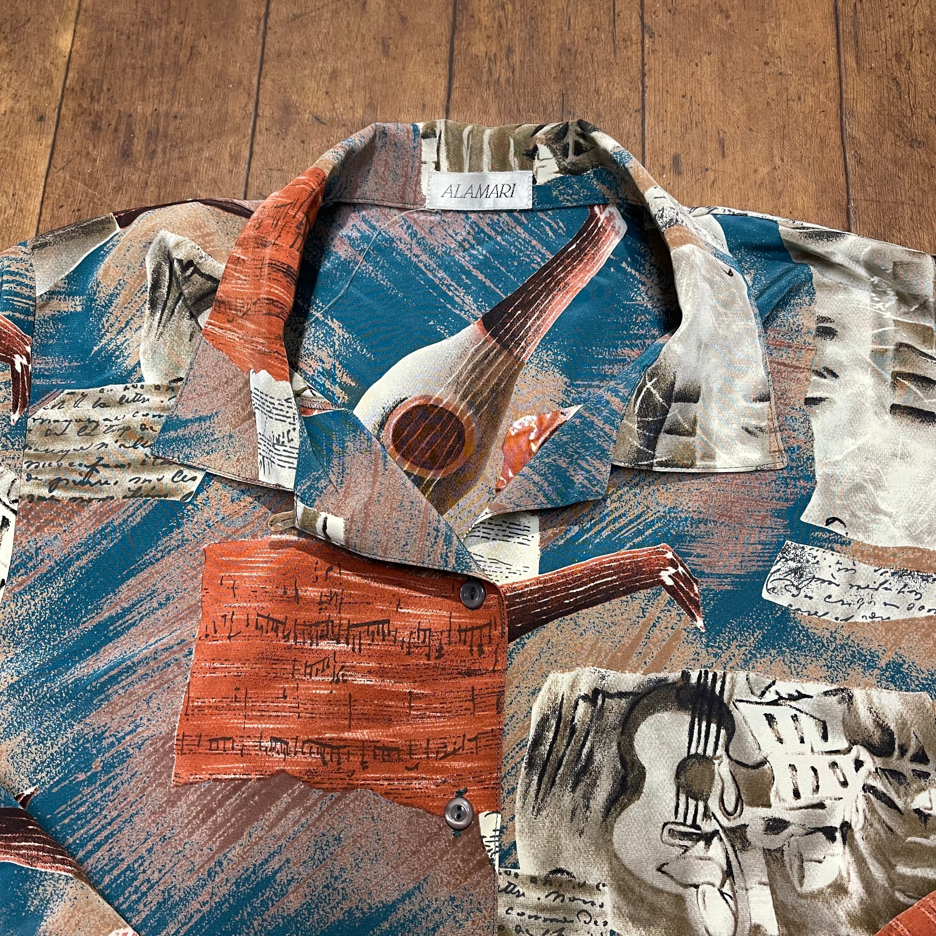 ・マンドリン柄オープンカラーシャツになります!サイズ感も大きめで柄も渋めな一枚になります!