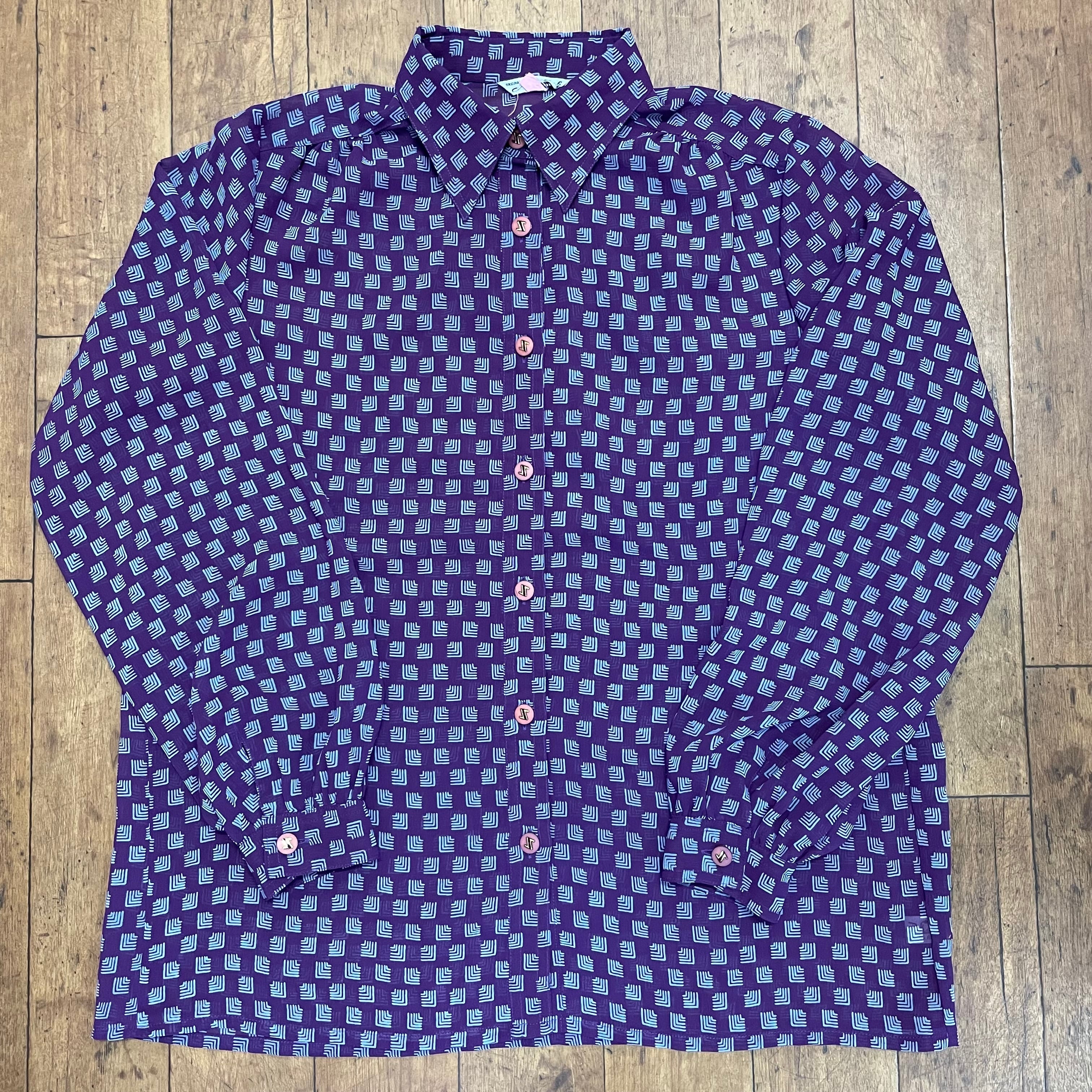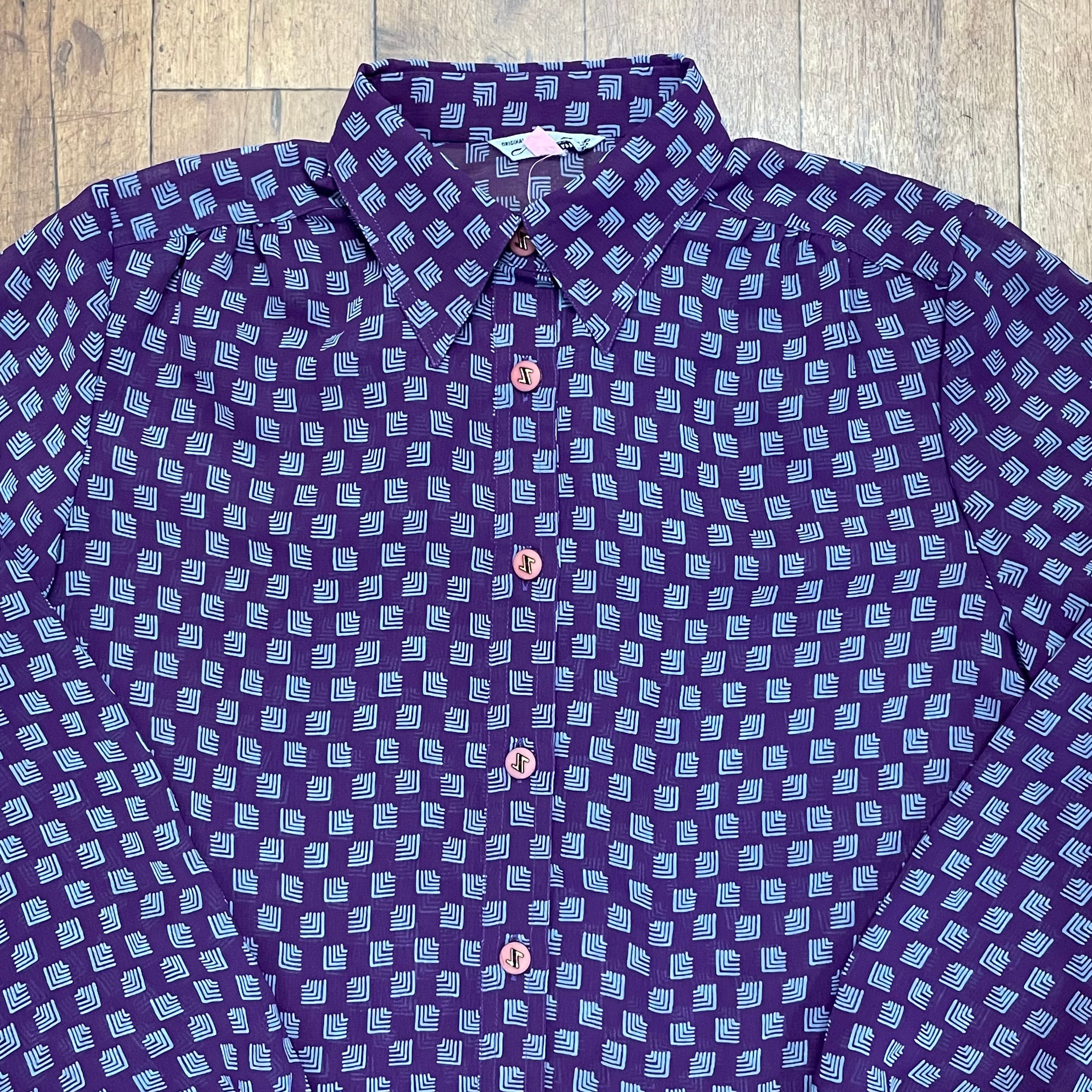 ・モダン 柄 シアー シャツ アンティークボタン レトロ ブラウス 121