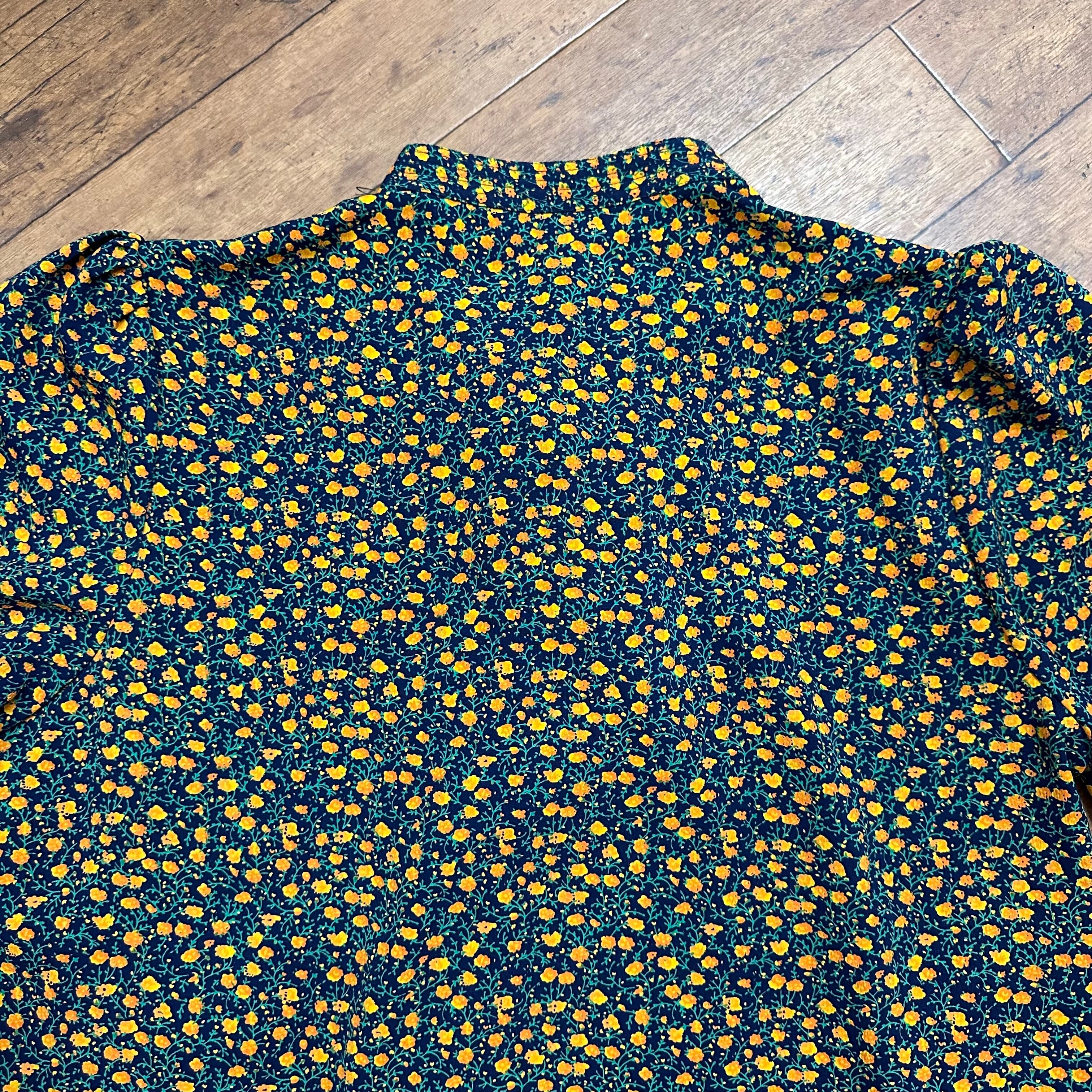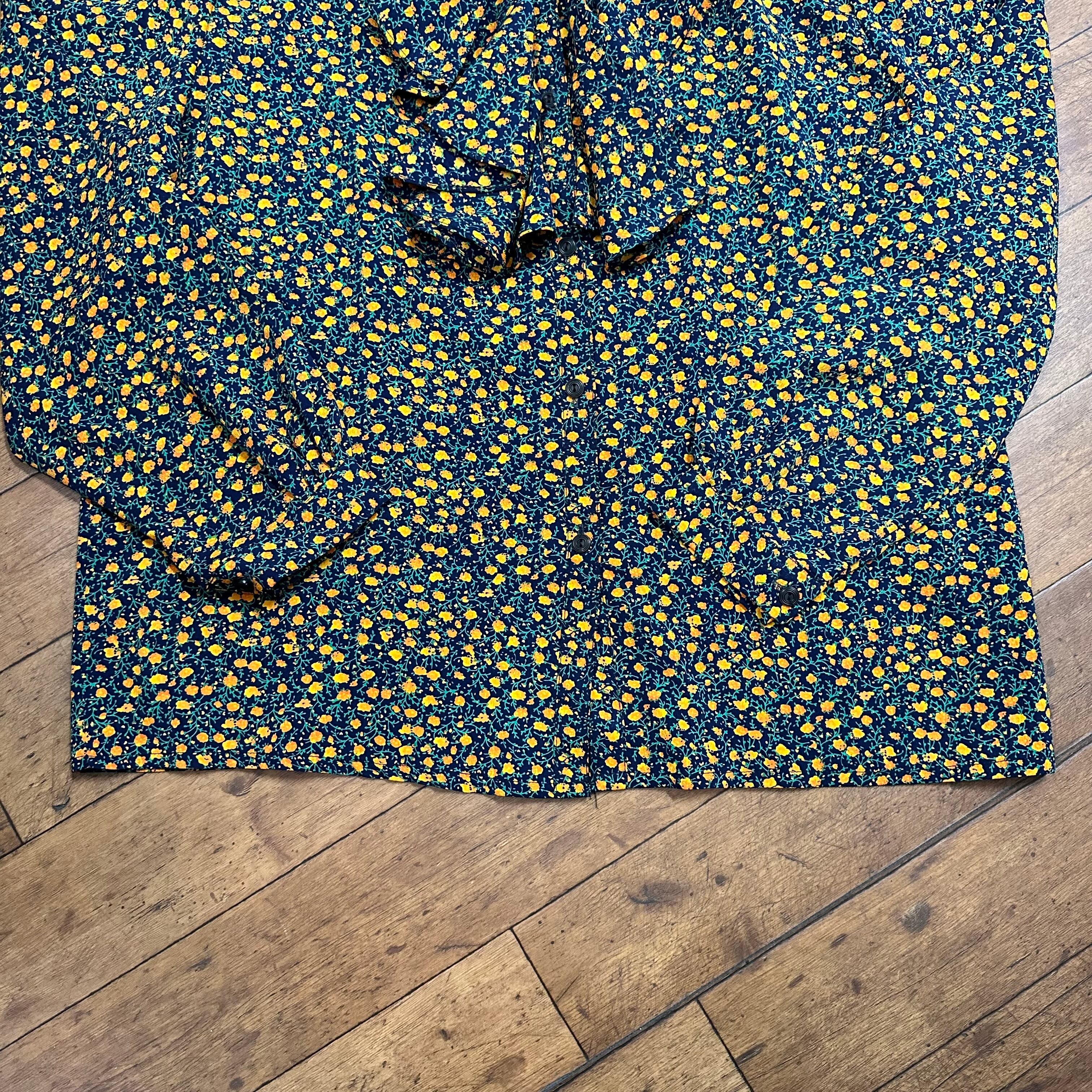 花柄 スタンドカラー シャツ パーワーショルダー フリル レトロ ブラウス 123