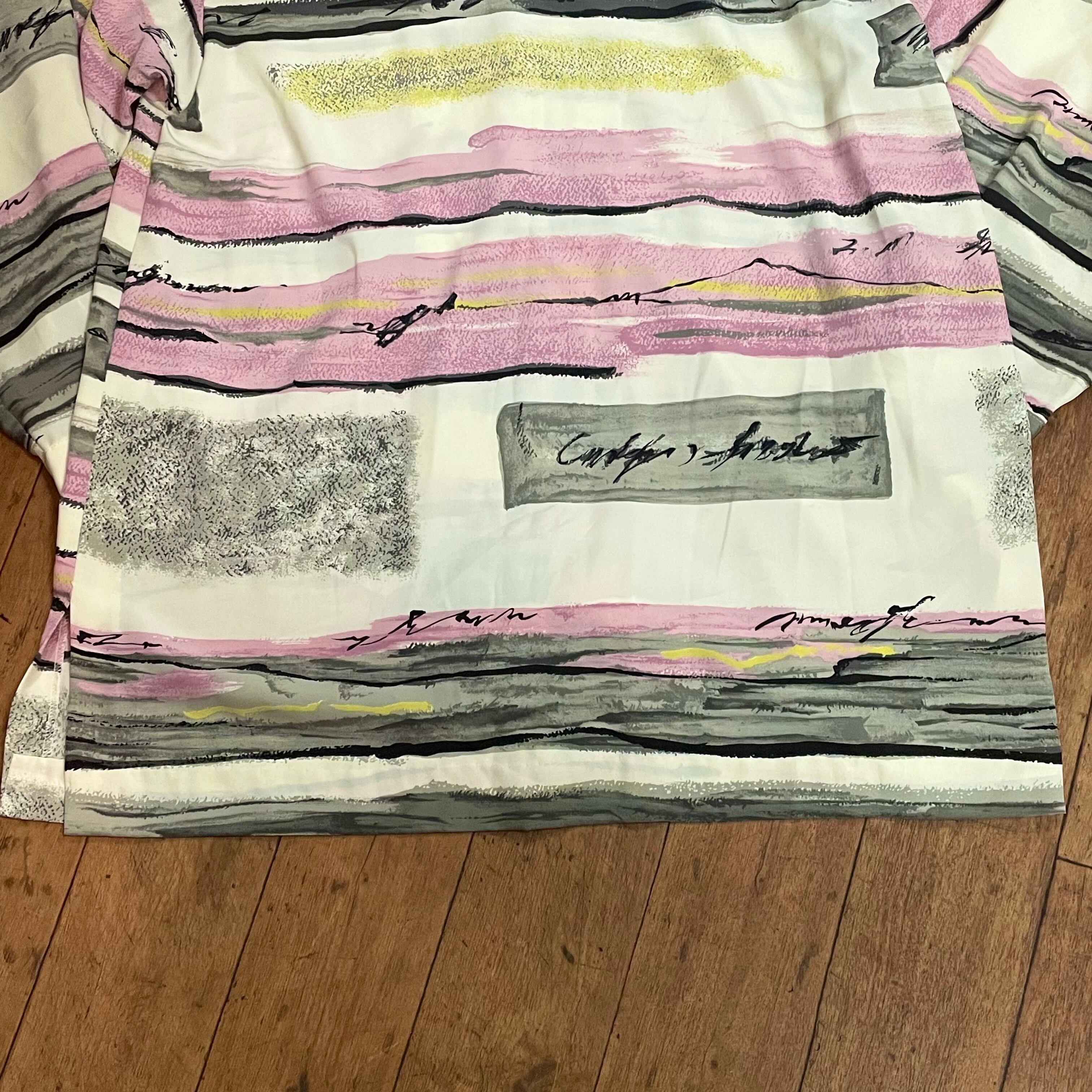 ・レトロブラウス ハマカラー 幾何学模様 金ボタン 長袖シャツ レトロ 柄シャツ ピンク色 灰色 白系 126