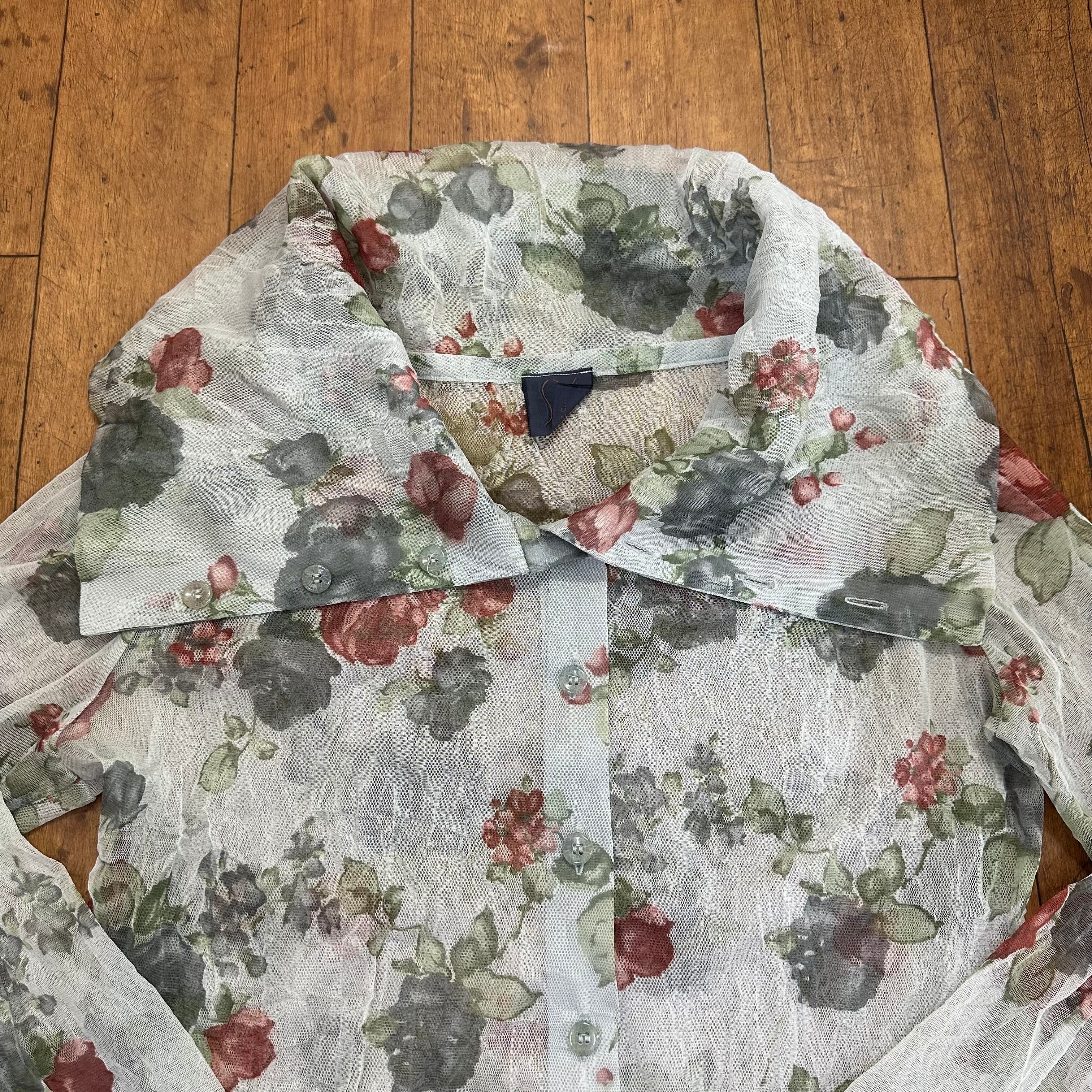 シアー シャツ バラ 薔薇柄 シースルー ケープカラー レトロブラウス 130