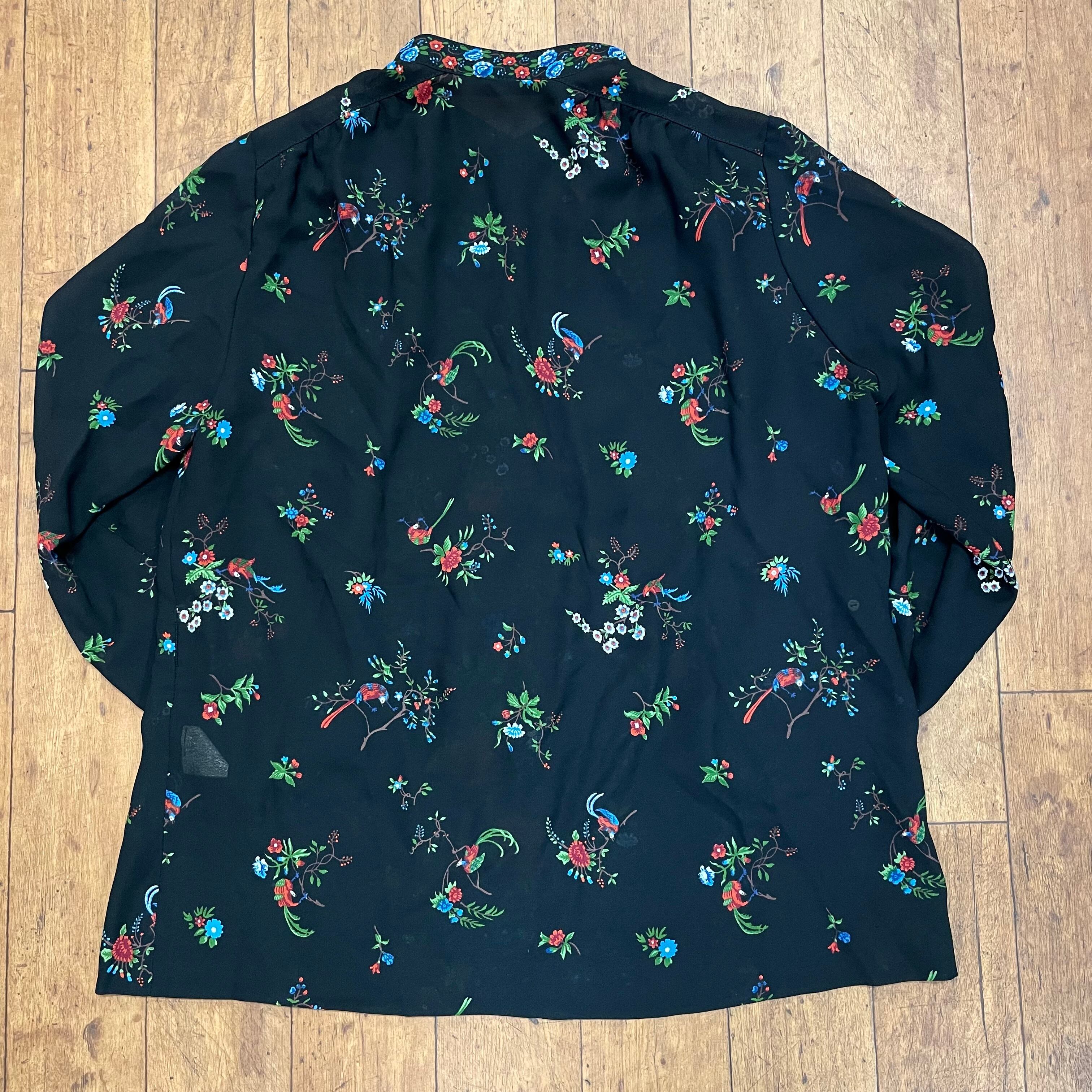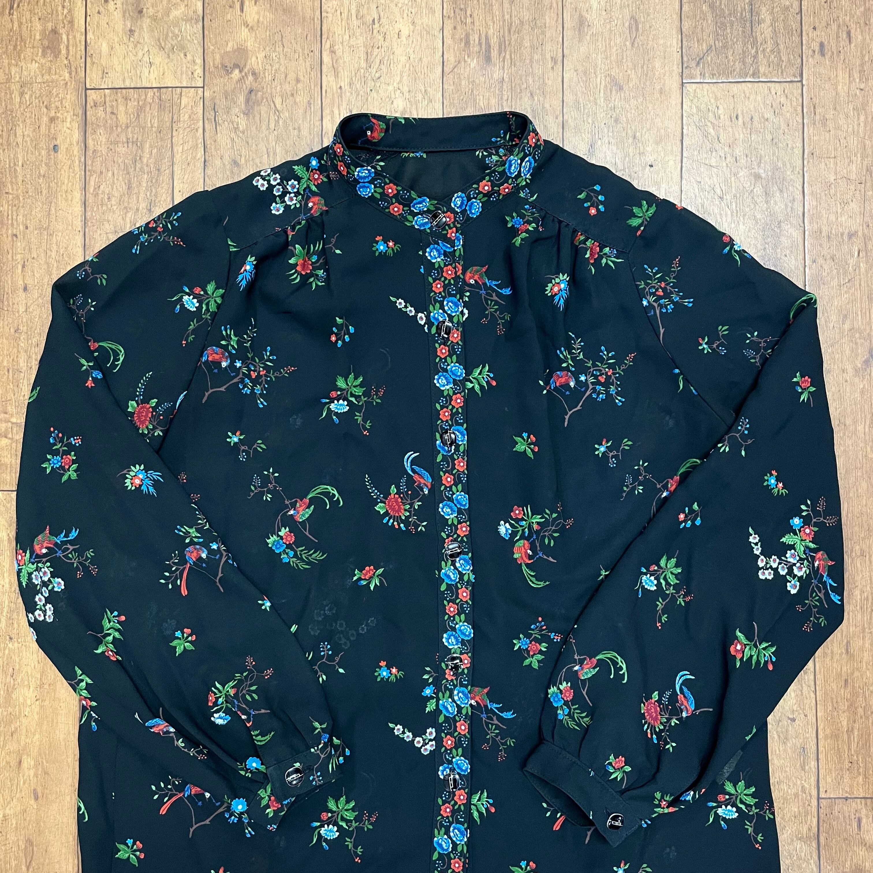 花柄 鳥柄 ヤマドリ シースルー シアー シャツ スタンド カラー レトロブラウス 135