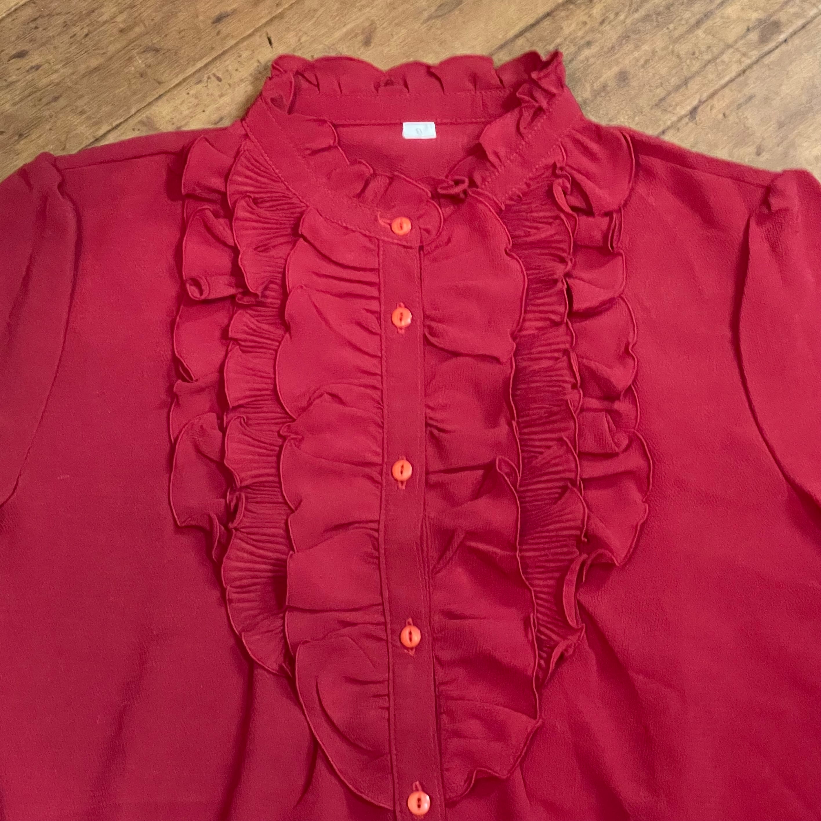 ブラウス 長袖シャツ レトロ レトロブラウス フリル フリルシャツ フリルスタンドカラー 赤 138