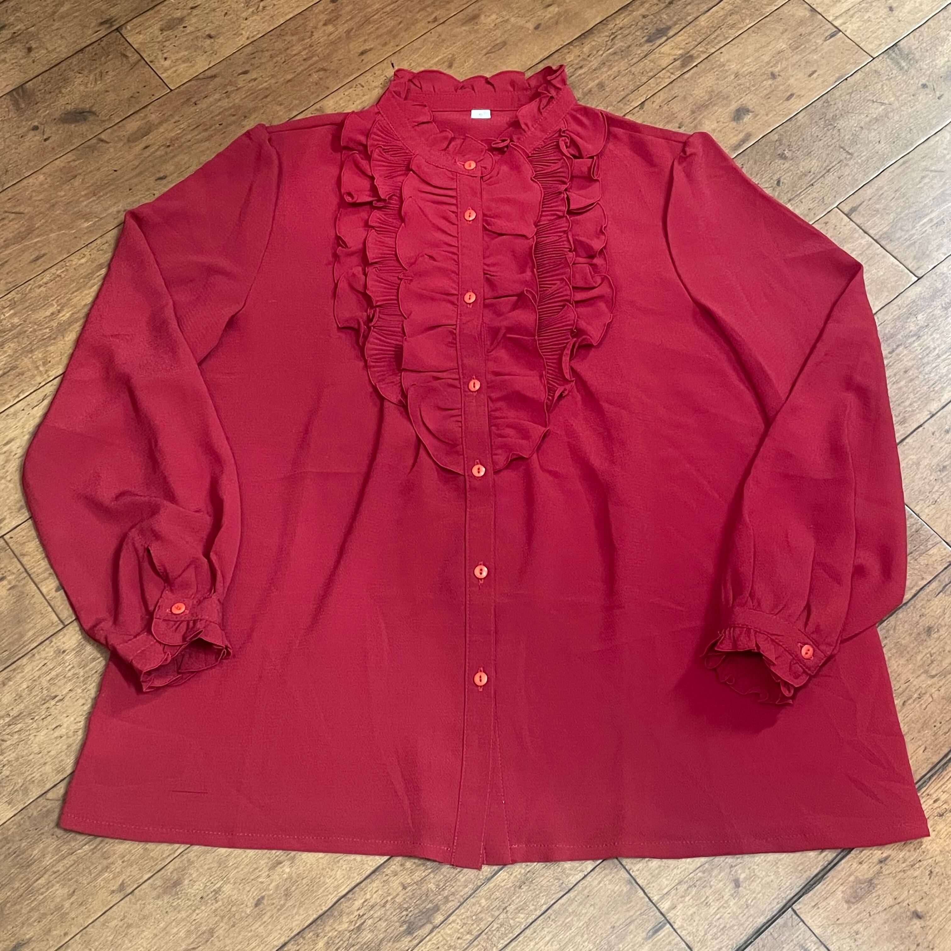 ・ブラウス 長袖シャツ レトロ レトロブラウス フリル フリルシャツ フリルスタンドカラー 赤 138