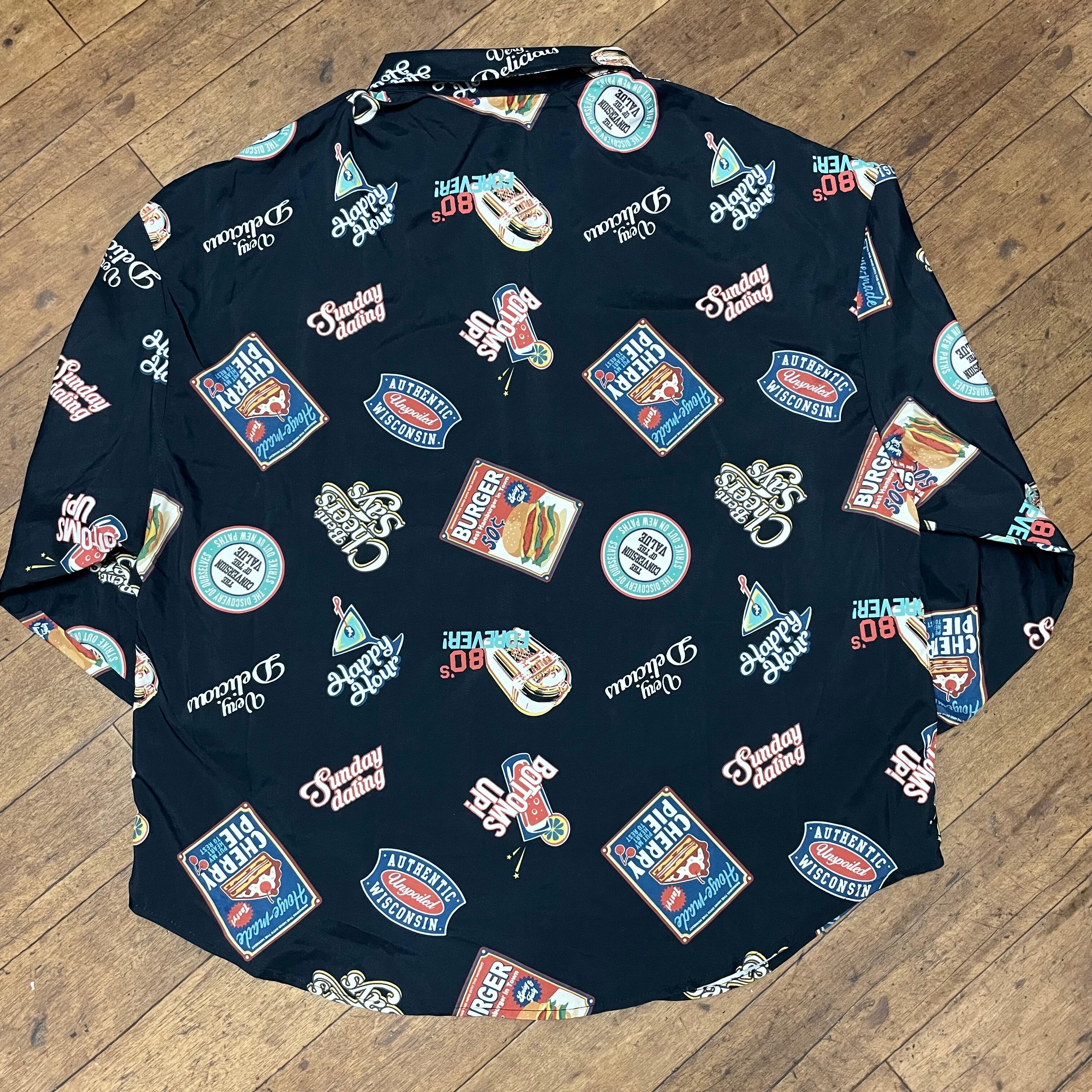 ・レトロな看板風の総柄シャツです!ビッグシルエットでゆったり着やすいです!