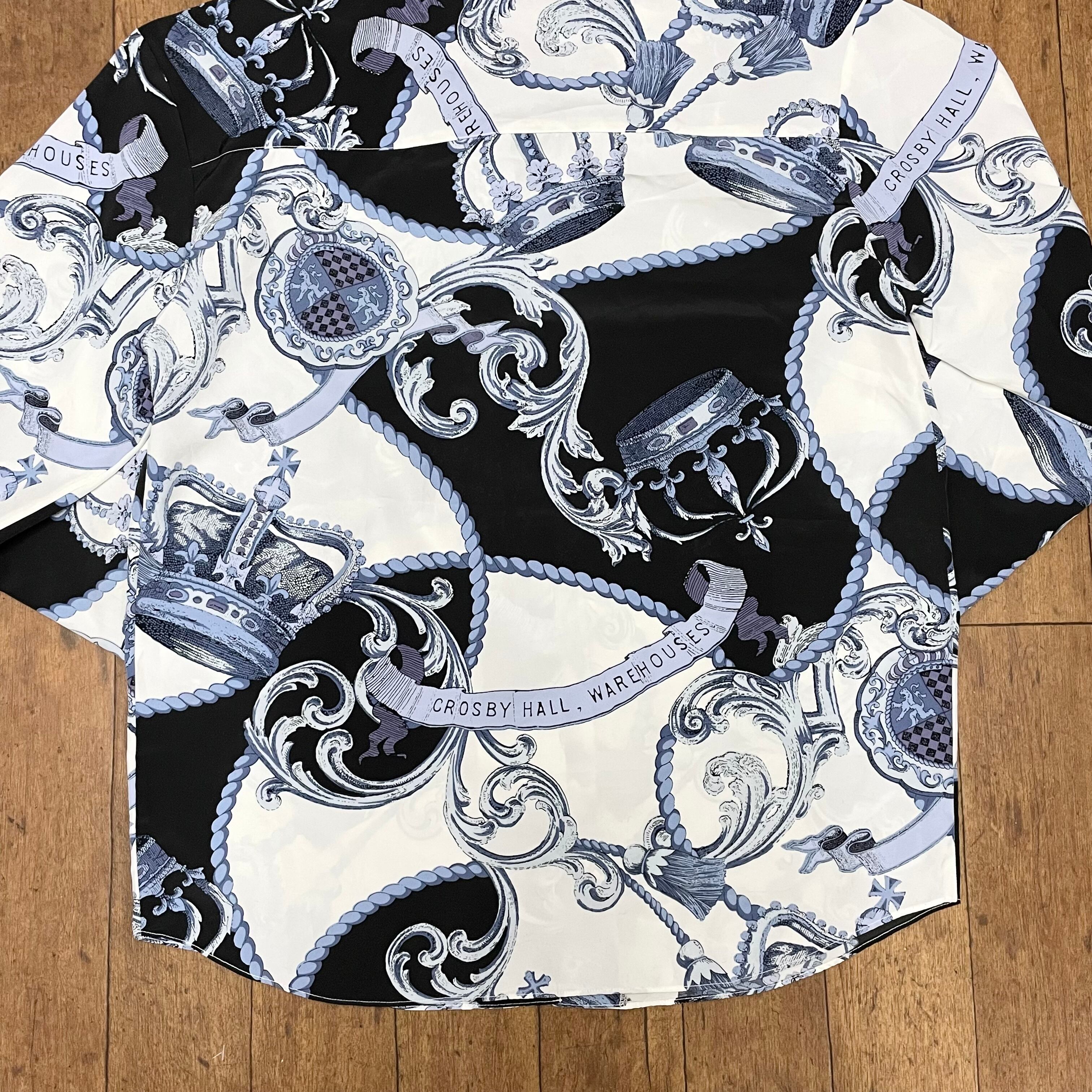 王冠柄 スカーフ柄 ロープ柄 総柄 オープンカラー 長袖シャツ レトロブラウス 153