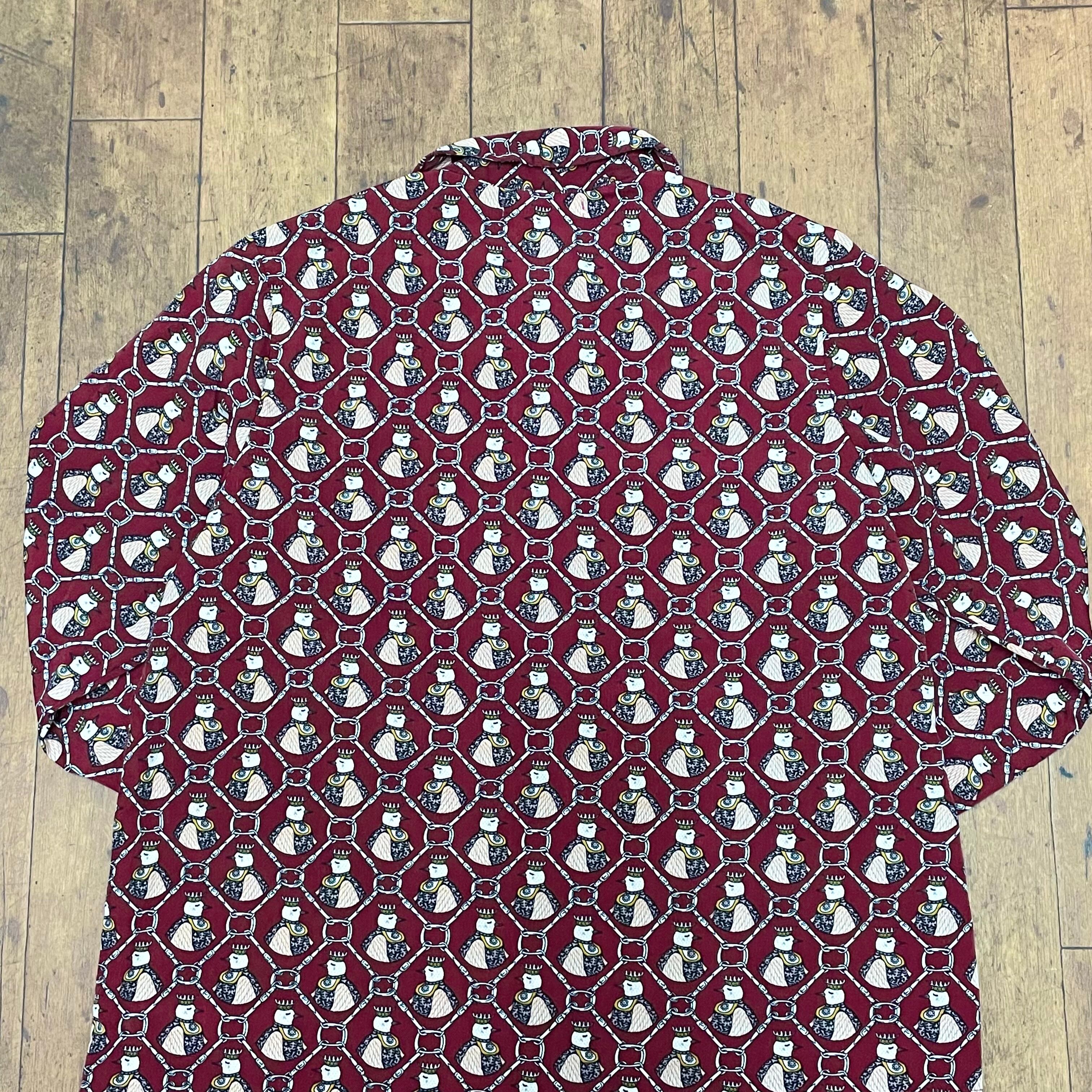 ・ベルト柄 鳥柄 総柄 長袖 シャツ ブラウス くるみ ボタン 155